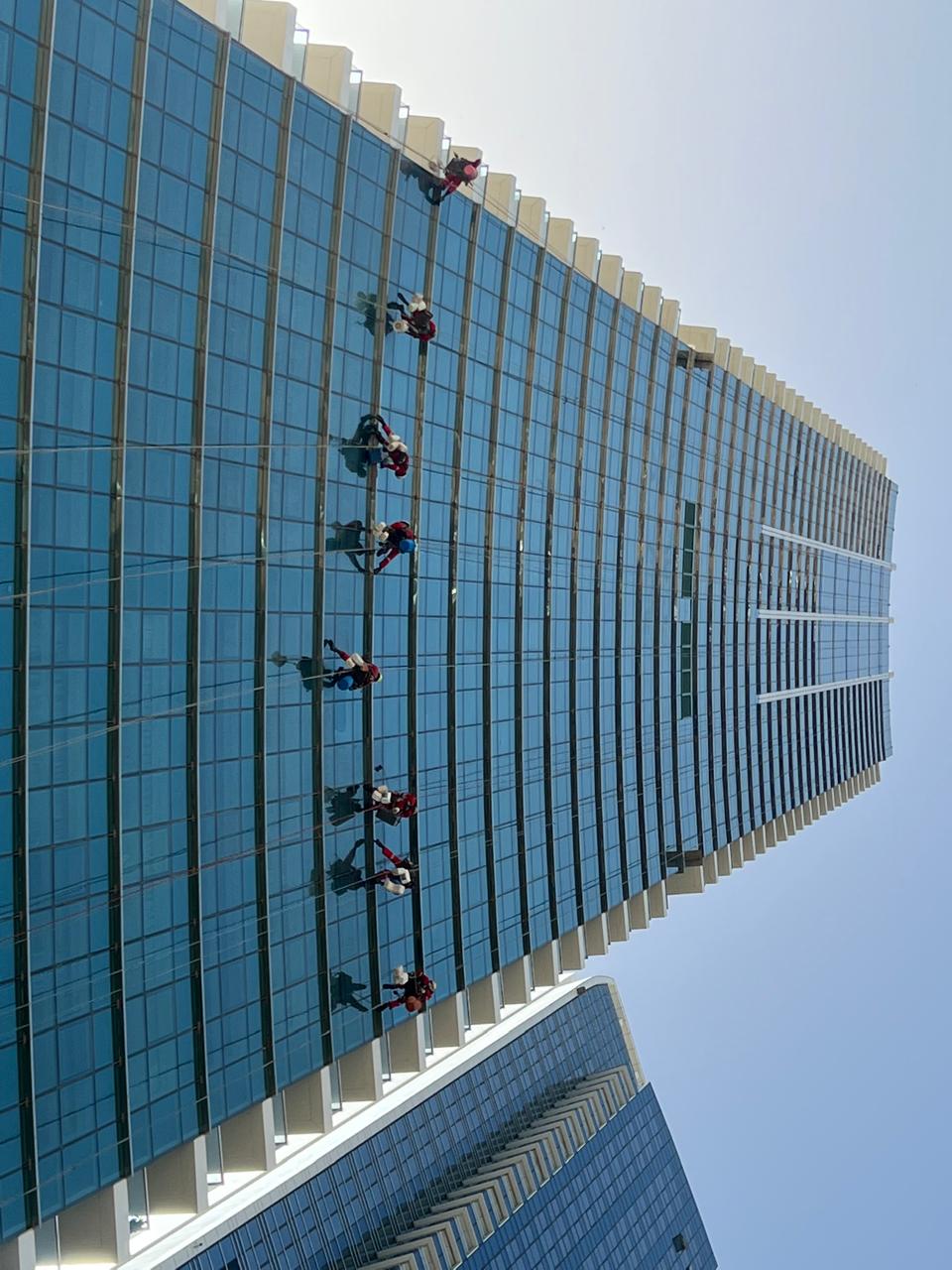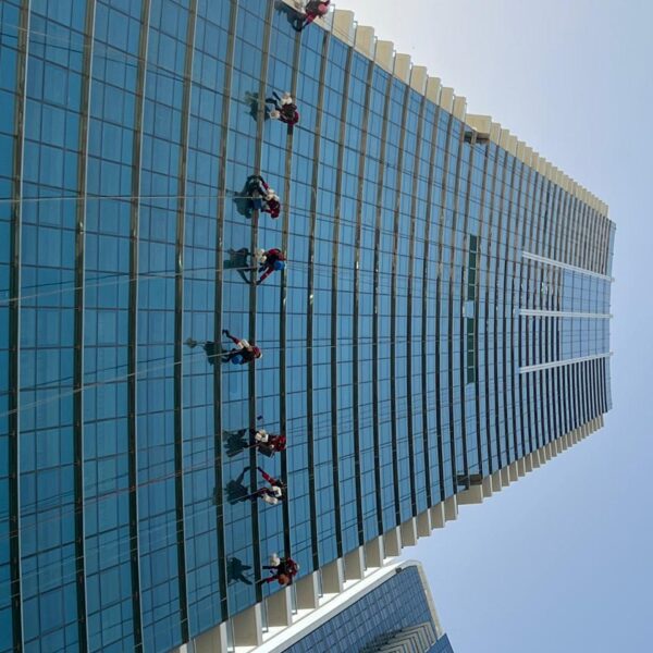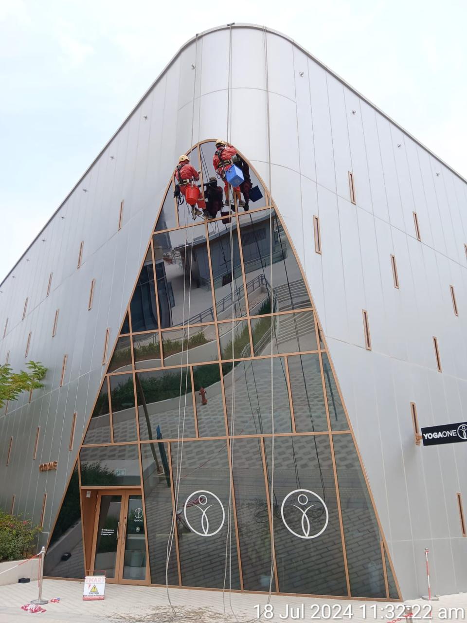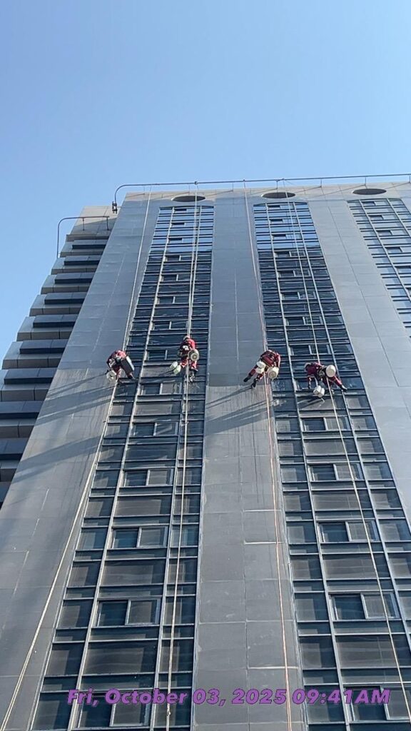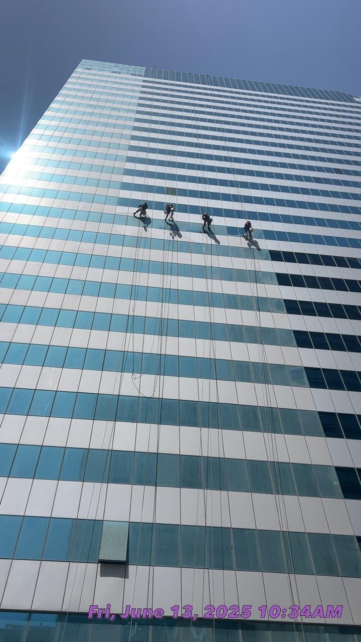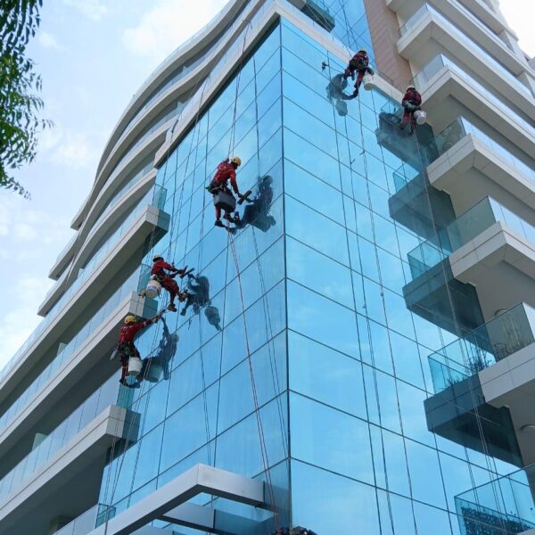 We provide professional glass cleaning for high-rise towers and commercial buildings using rope access and advanced cleaning techniques. Our team ensures streak-free, sparkling results every time.