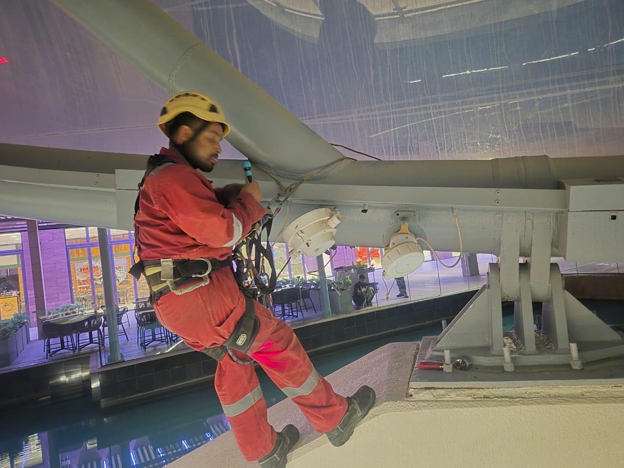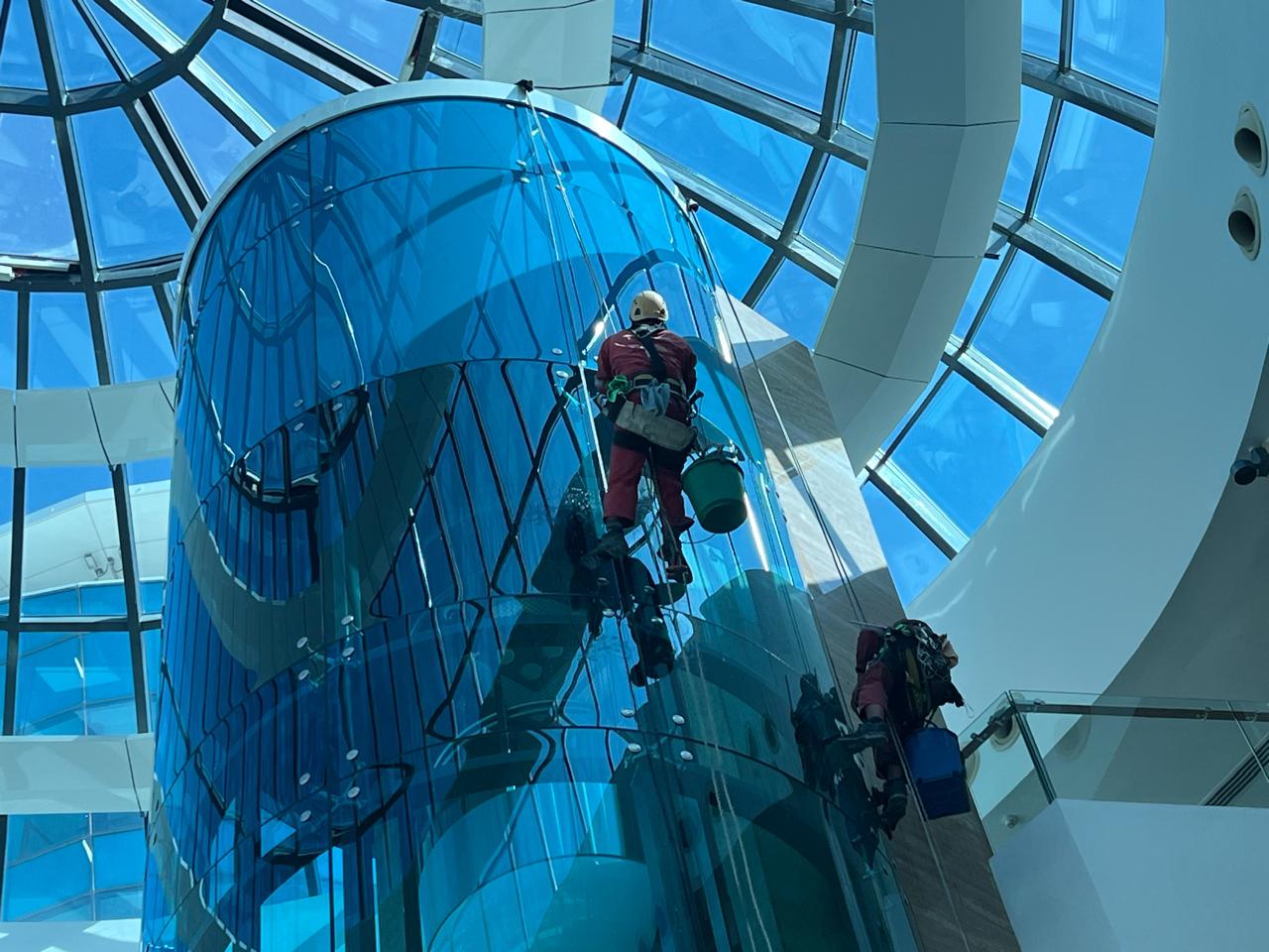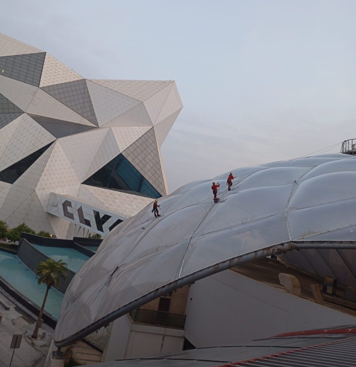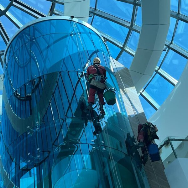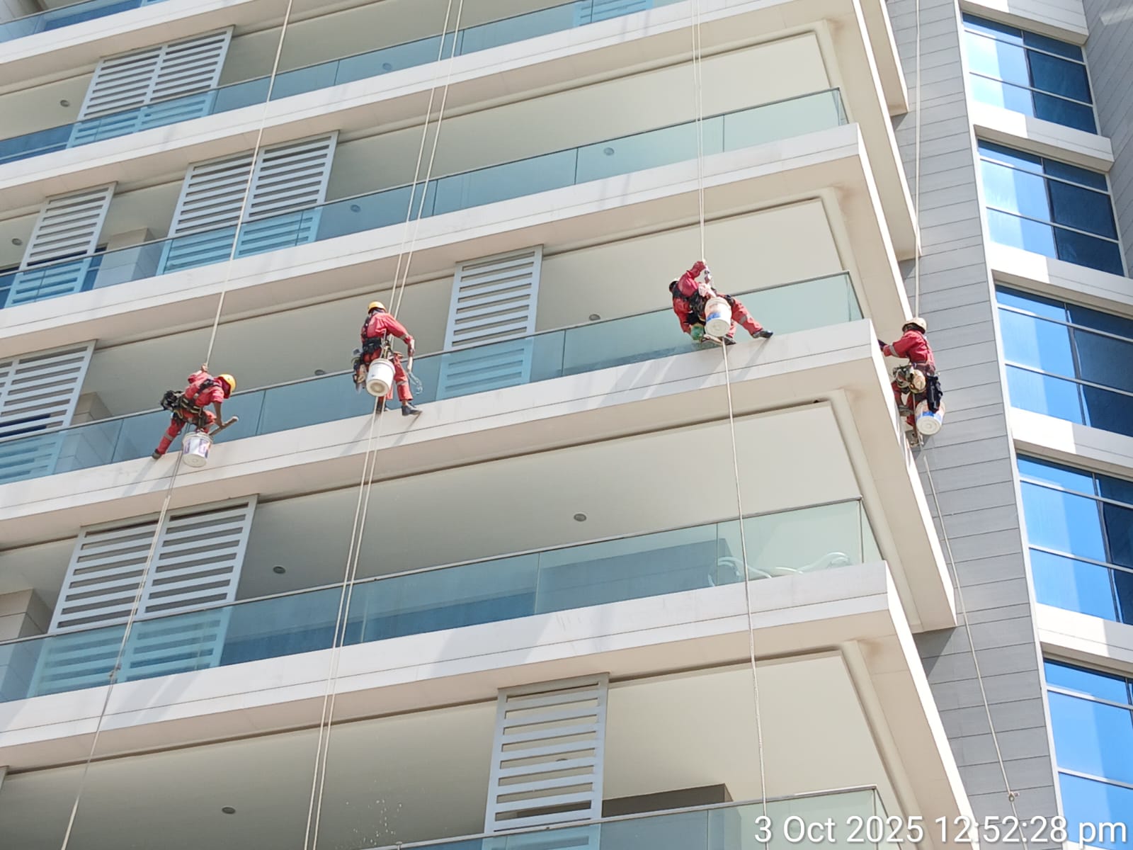 We provide professional glass cleaning for high-rise towers and commercial buildings using rope access and advanced cleaning techniques. Our team ensures streak-free, sparkling results every time.